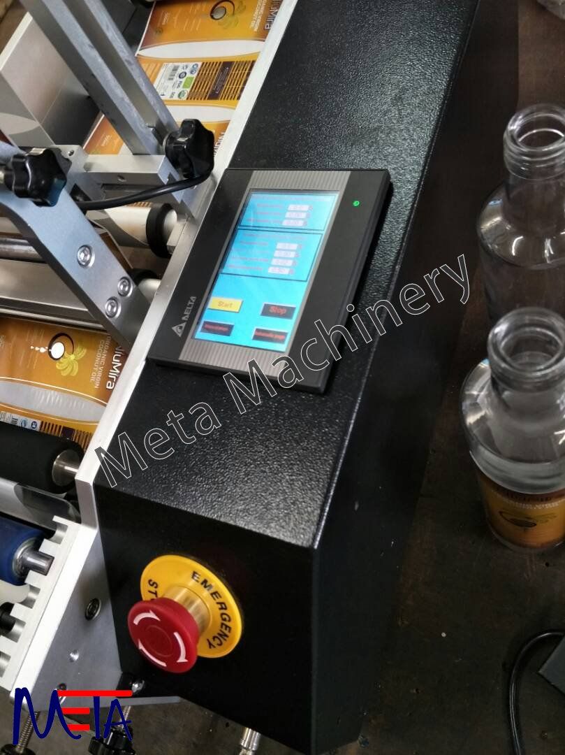 Double Side Round Bottle Labeling Machine Malaysia suitable for different size of adhesive label or adhesive film on all kinds of round bottle ,High accuracy and high speed, dispensing & labeling automatically.