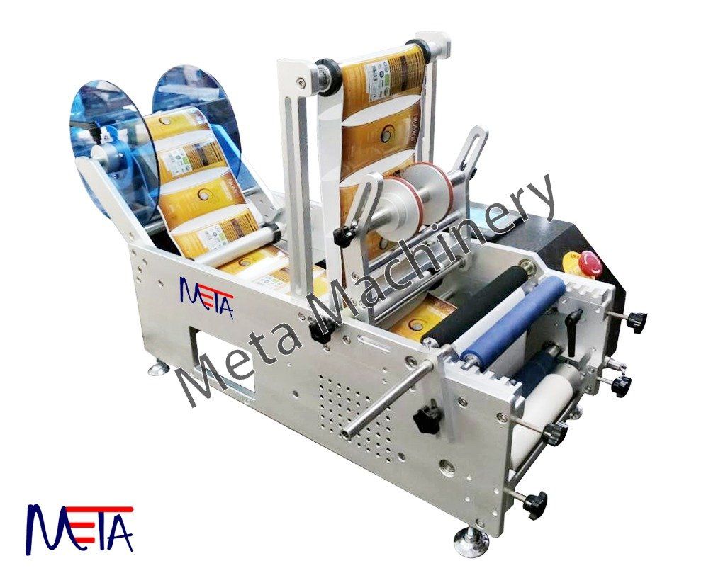 Material of container can be : Round bottle, Round tank, Round barrel to self-adhesive labeling. Double