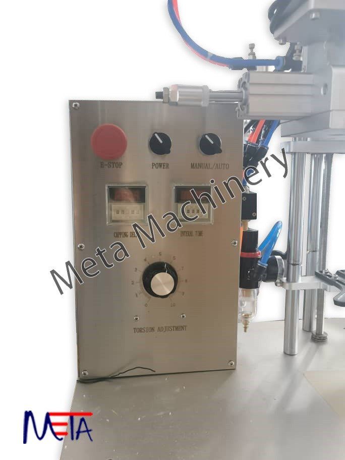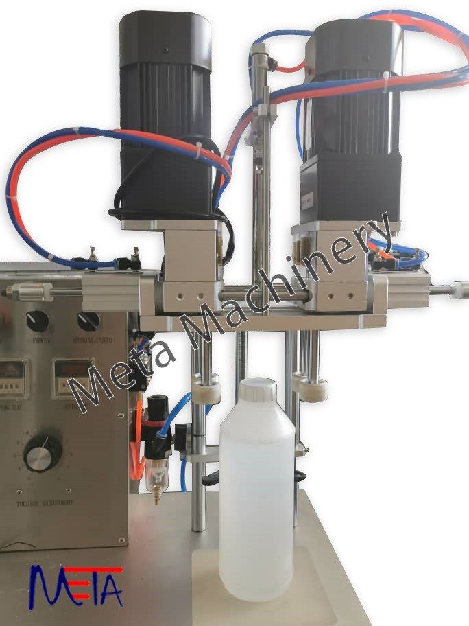 This full automatic capping machine is used for capping different shapes of bottles in cosmetics, food,beverages,